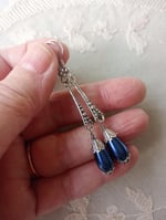 1920s Art Deco Pearl Teardrop Earrings, Montana Blue