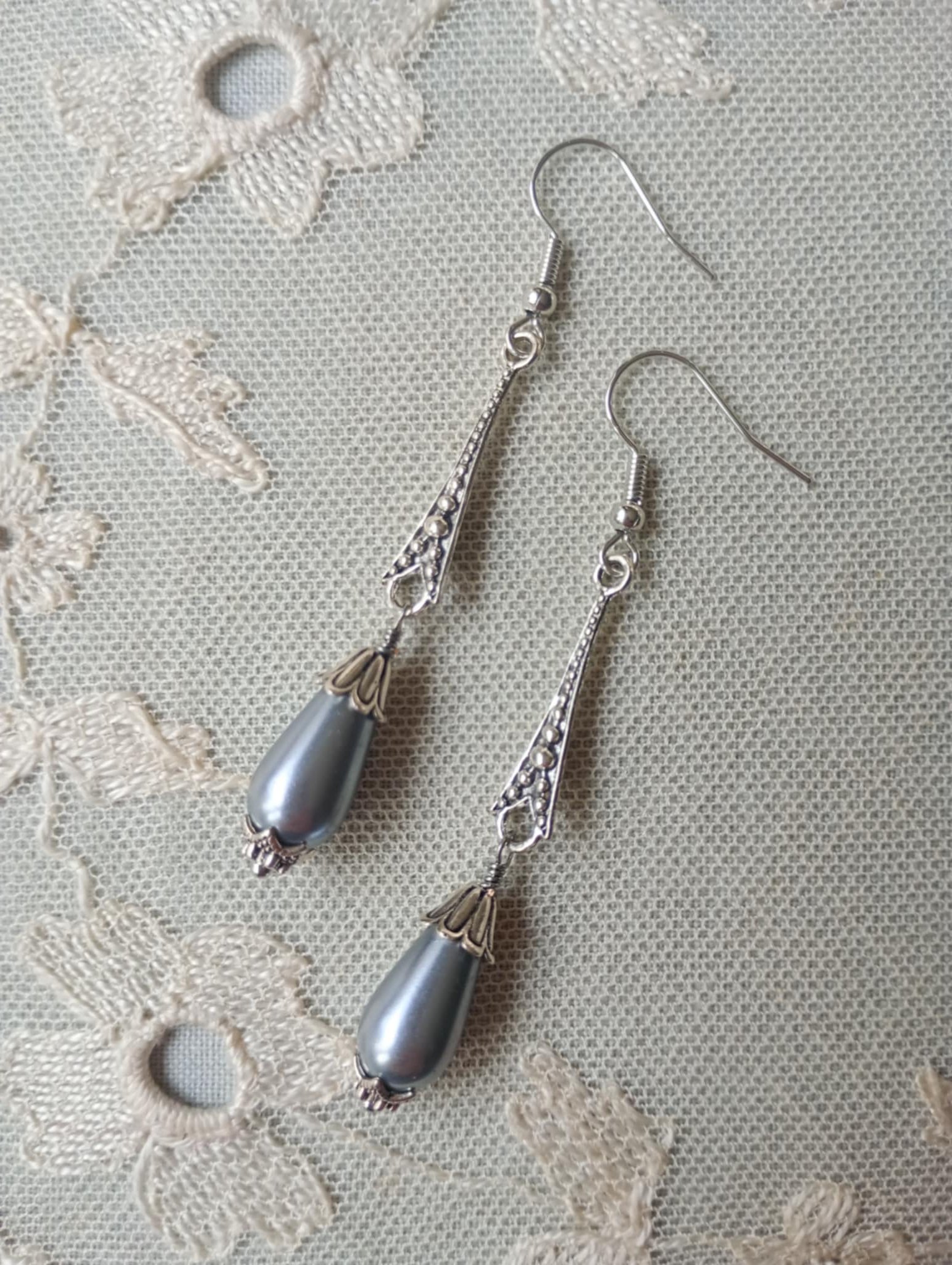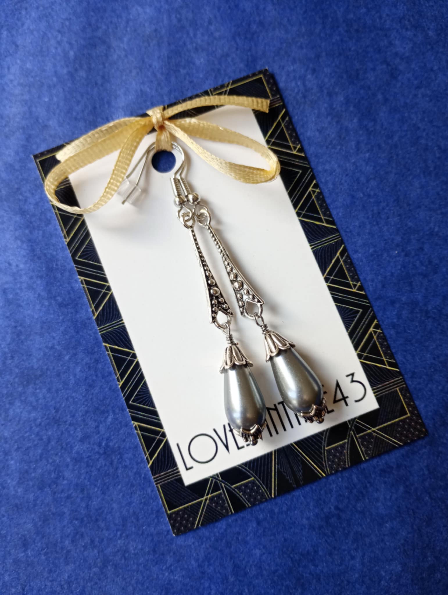 Also available in dark grey here- https://www.lovesvintage43.com/product/1920s-art-deco-pearl-drop-earrings-dark-grey