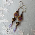 Acorns Bohemian Statement Bead Earrings in Purple & Antique Bronze