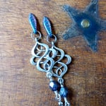 Handmade vintage inspired elegant dangle earrings inspired by the antique motifs and patterns of the art nouveau period .