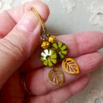 Contemporary Boho Golden Leaf Earrings in Olive Green, Gold & Bronze