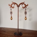 Edwardian Floral Pearl Earrings, Light Caramel & Antique Copper