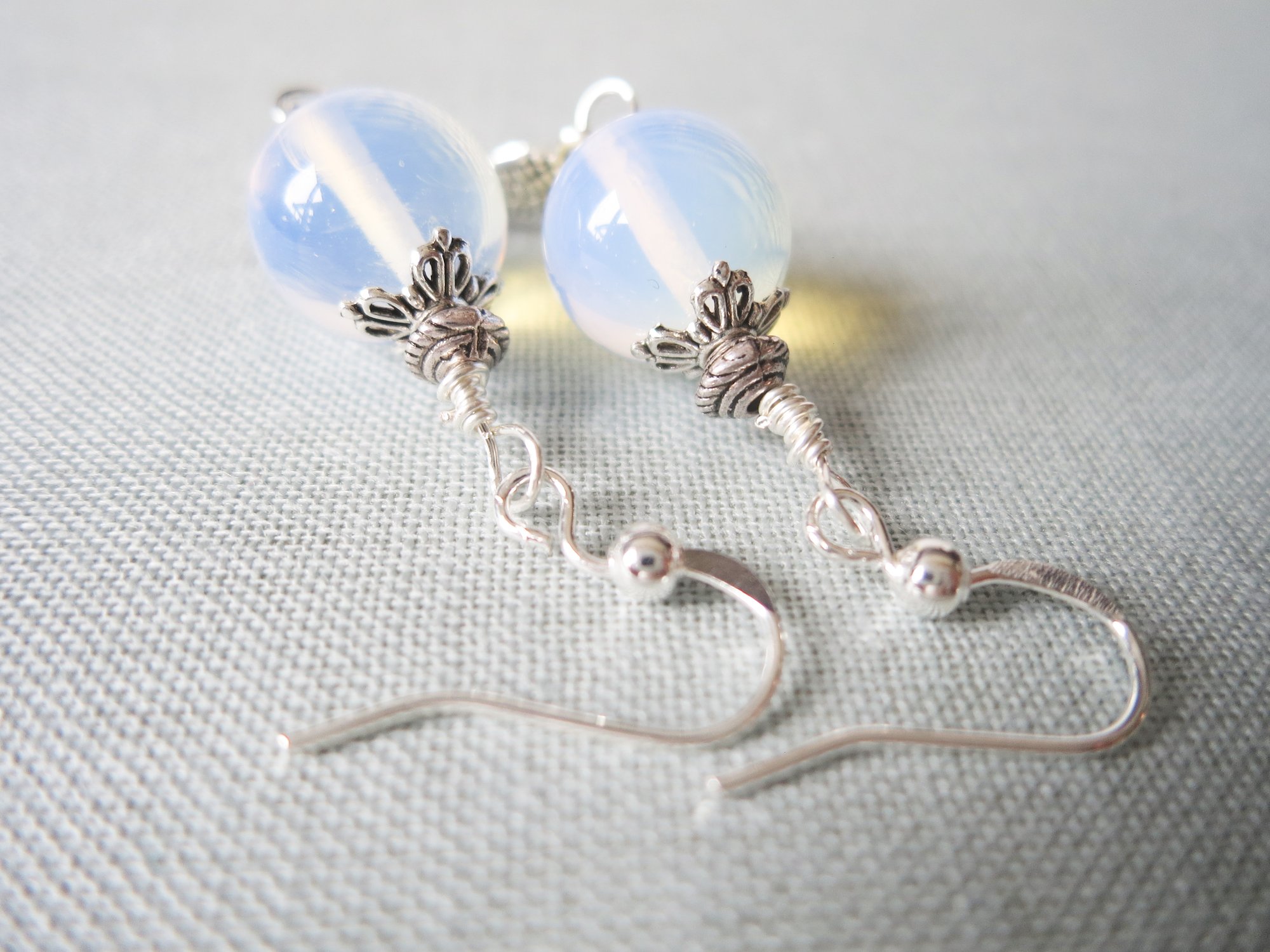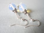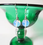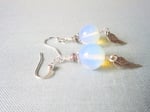 These pretty summery boho style dangle earrings were handmade by me and feature beautiful glass opalite beads which have a luminescent golden and blue hue to them when the light shines through and Tibetan silver Angel's Wing charm dangles.