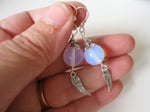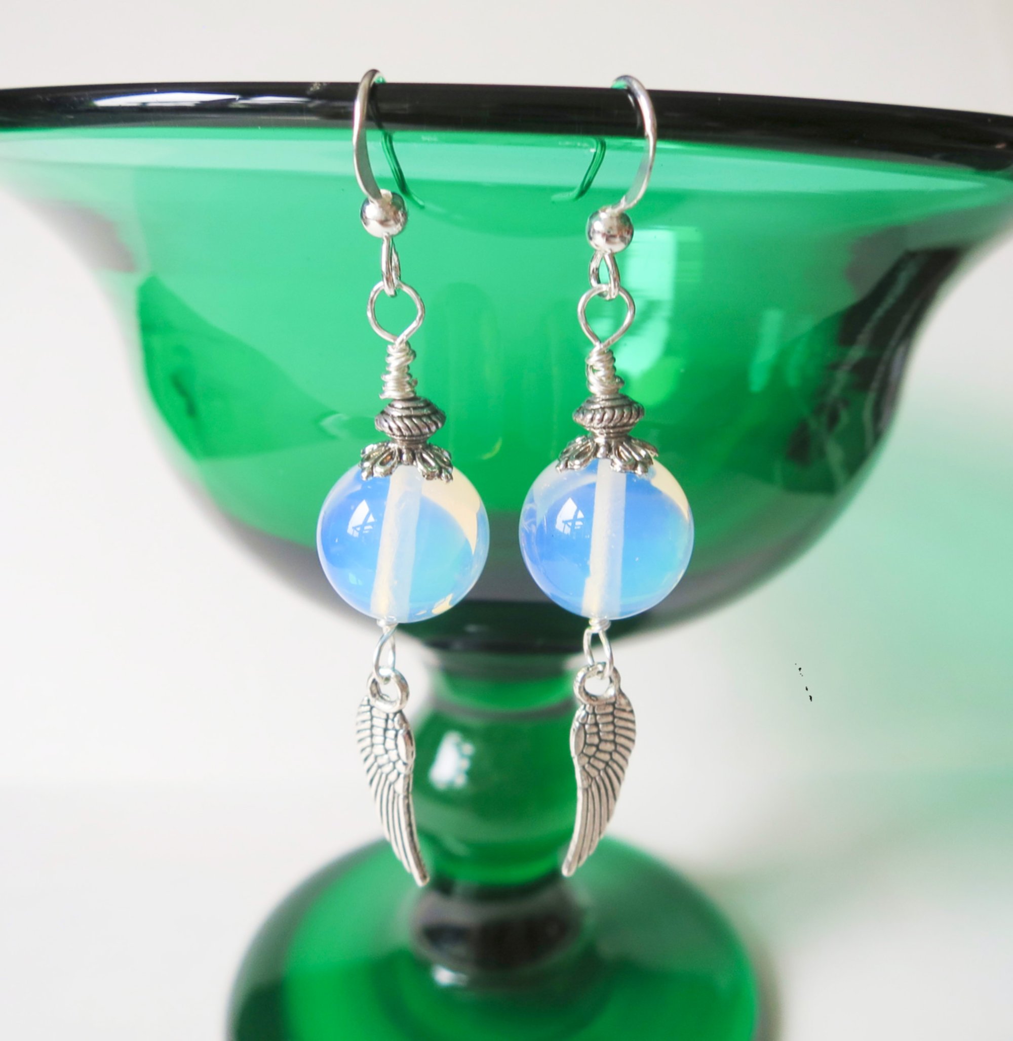 Silver Angel Wings Glass Opalite Earrings, Pierced or Clip On