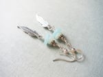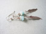 Silver Feather Amazonite Gemstone Earrings, Pierced or Clip On